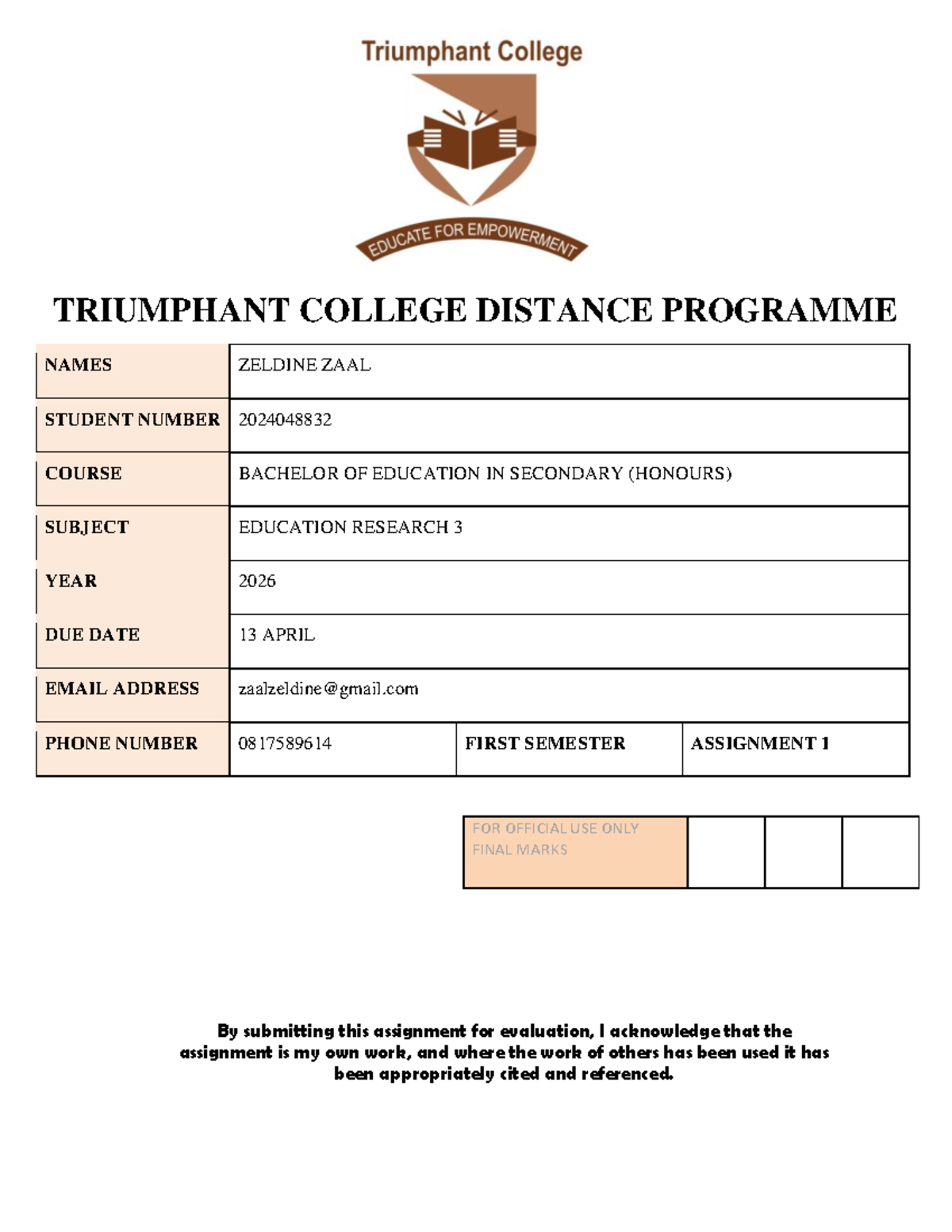 HED4807 Assignment 1 Semester 1 2026 - Due 29 April 2026 - StudyPass