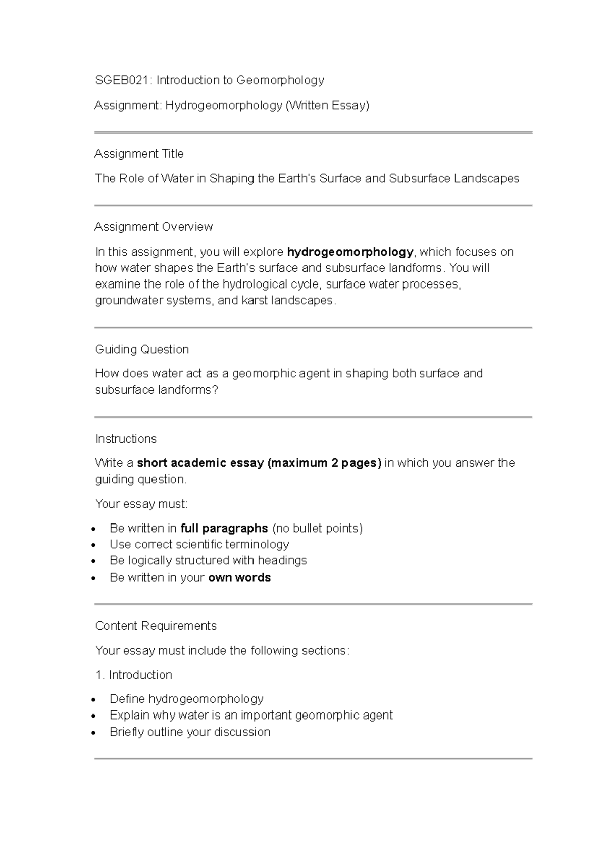 SGEB021: Hydrogeomorphology Essay Assignment - Studocu