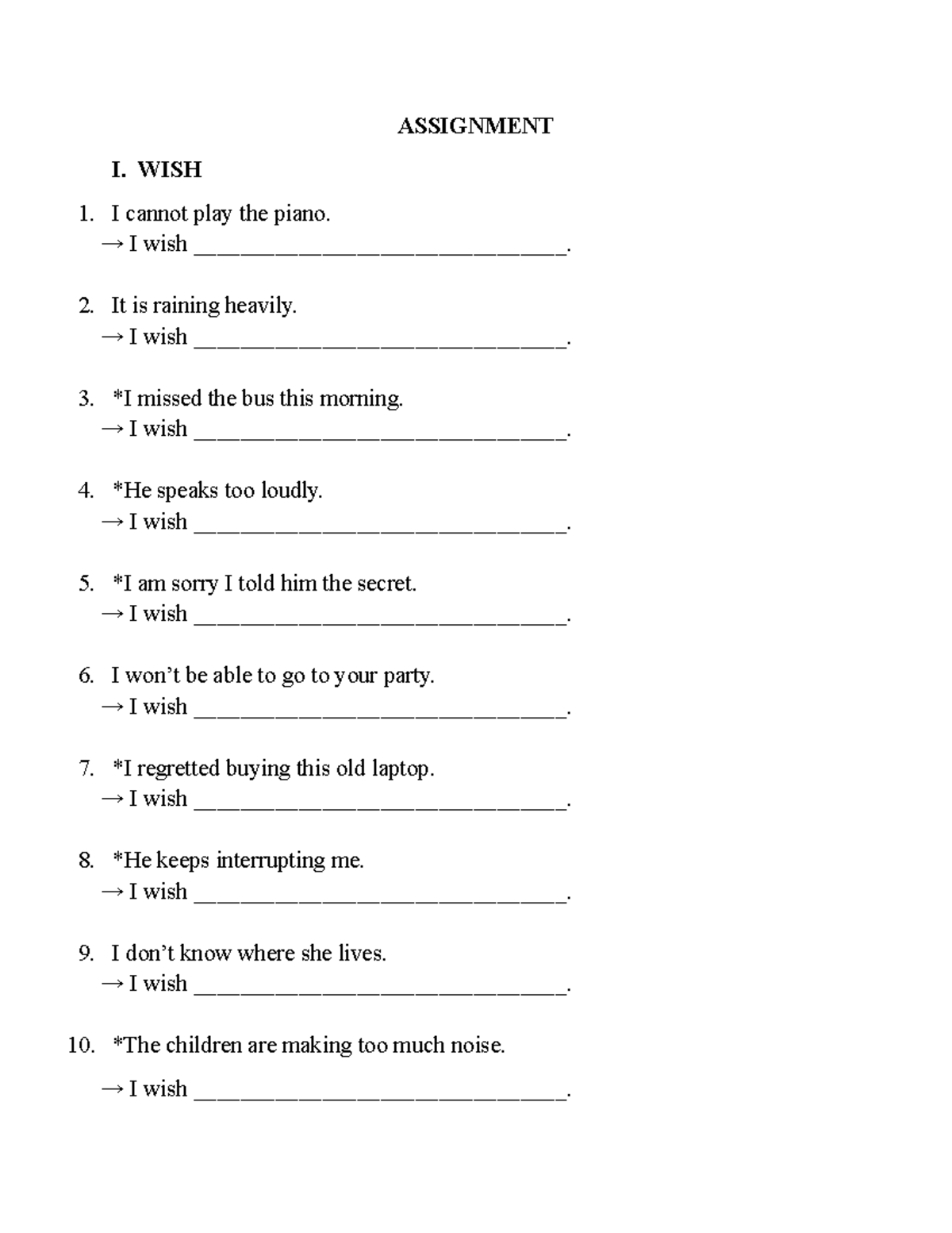 ASSIGNMENT I: WISH Sentences - Tiếng Anh Ngữ Pháp - Studocu