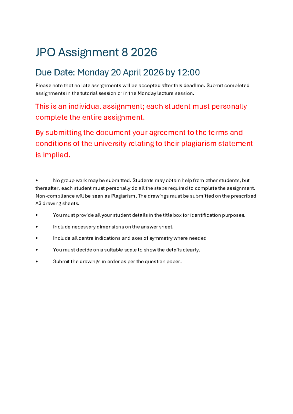 JPO Assignment 8 2026: Full Assembly Drawing Instructions - Studocu