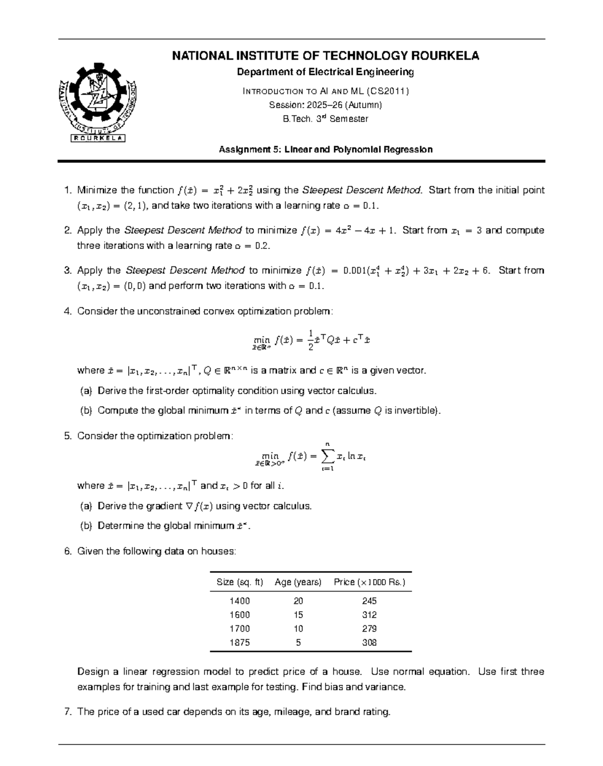 CS2011 Assignment 5: Linear & Polynomial Regression Techniques - Studocu