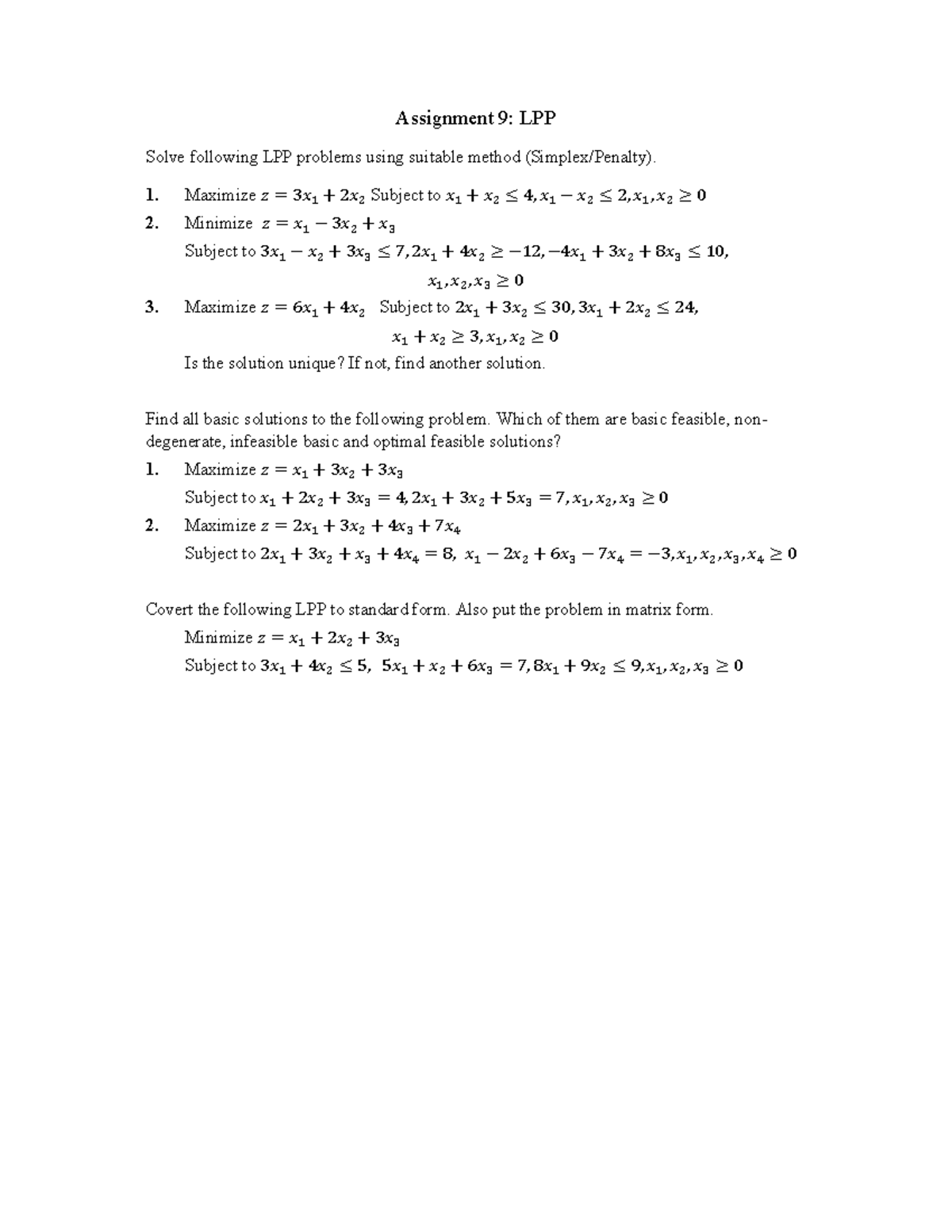Assignment 9: LPP Problem Solving and Analysis - Studocu