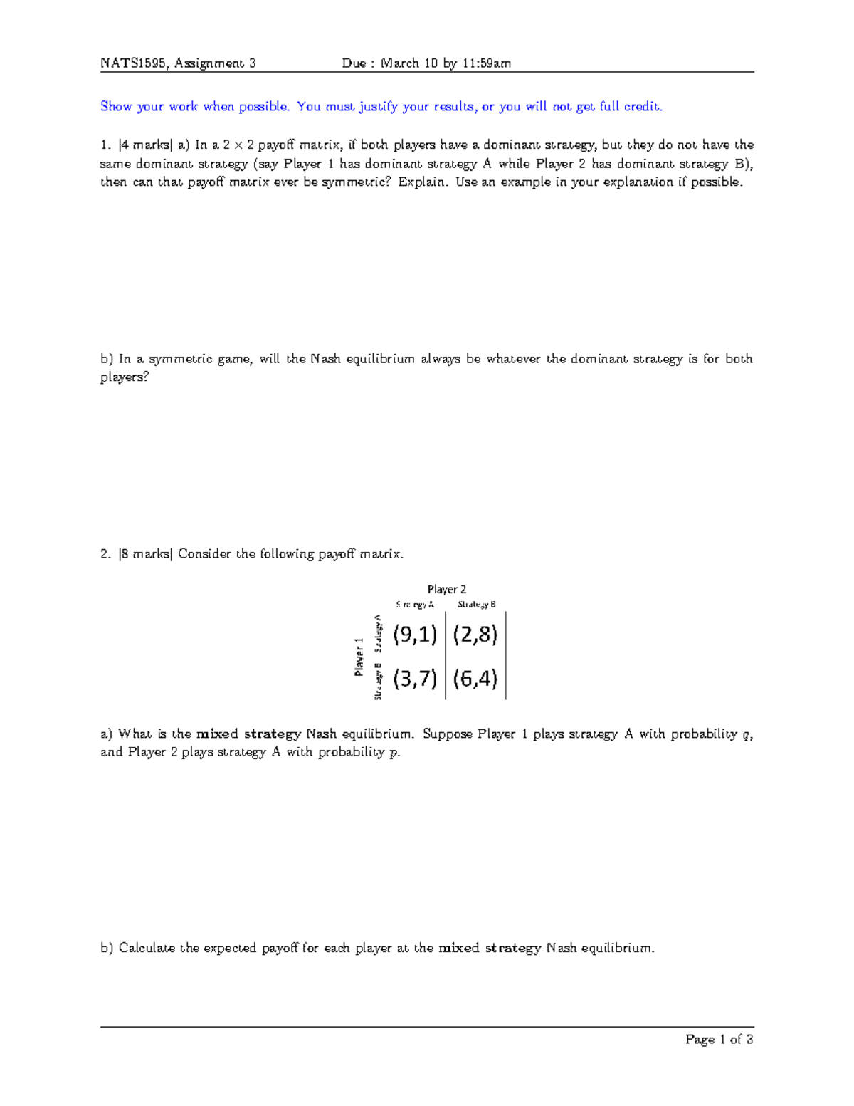 NATS1595, Assignment 3: Game Theory Analysis and Strategies - Studocu
