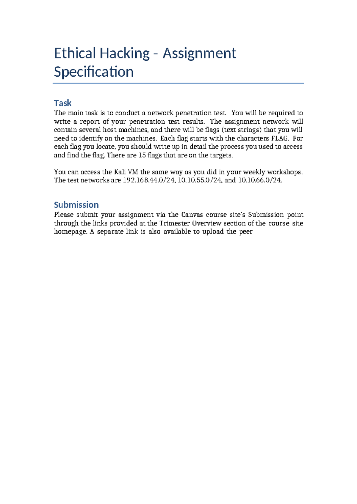 Ethical Hacking Assignment: Network Penetration Test Report - Studocu