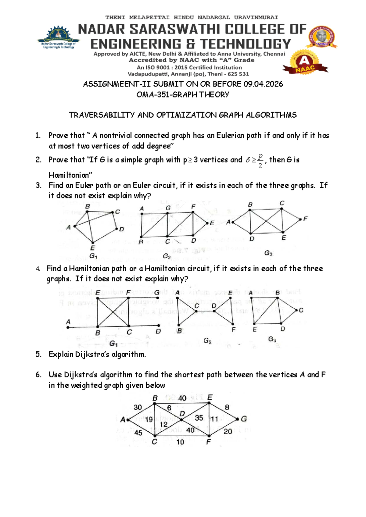 Assignment 4: Graph Algorithms - Eulerian & Hamiltonian Paths - Studocu