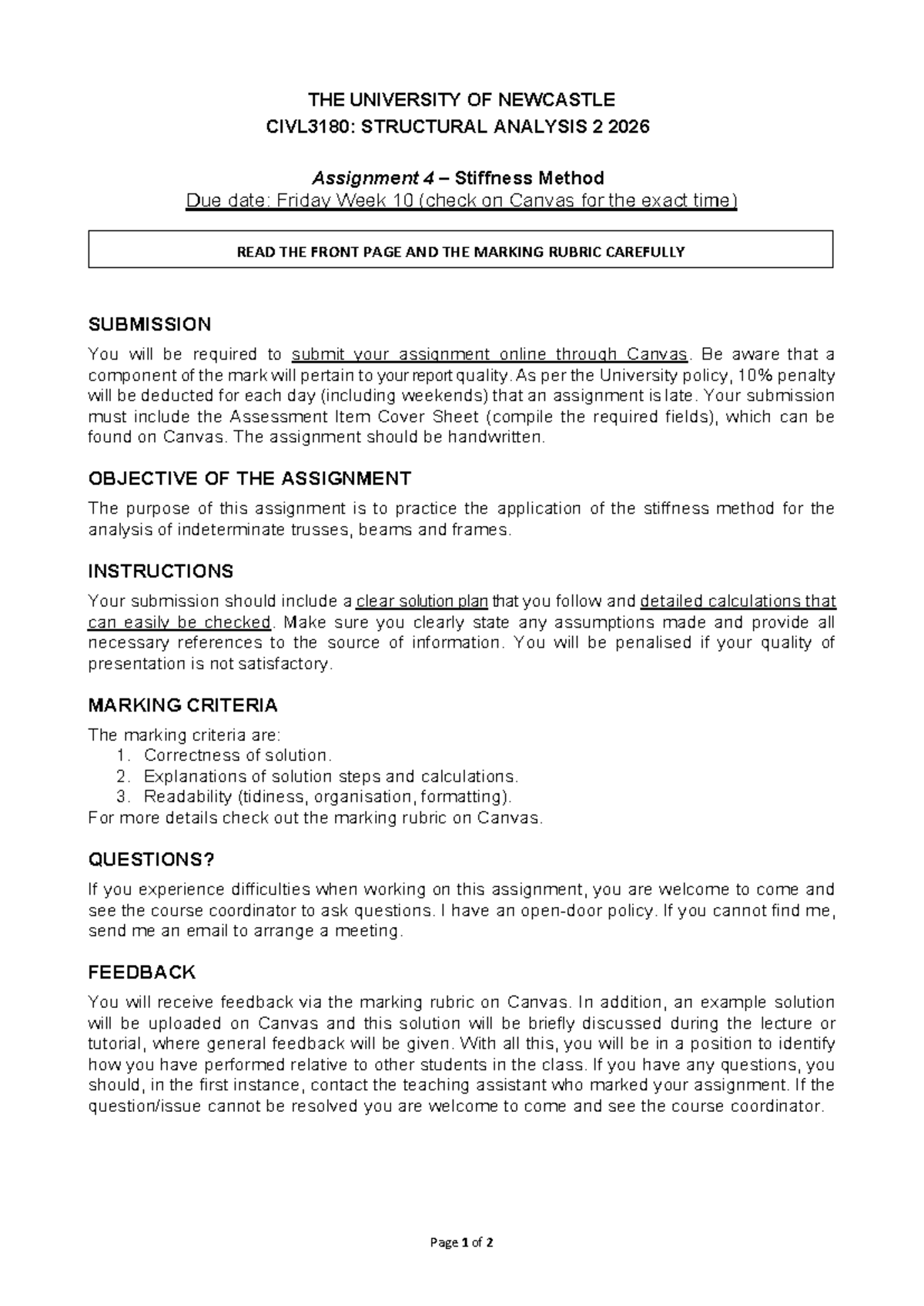 CIVL3180: Assignment 4 - Stiffness Method Guidelines 2026 - Studocu