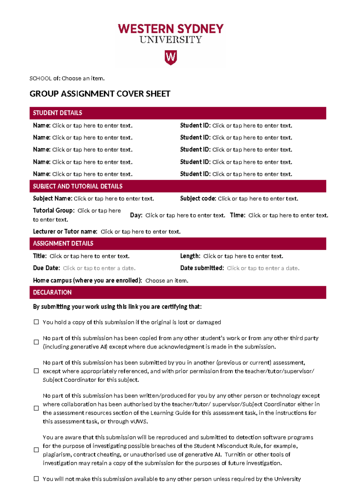 Group Assignment Cover Sheet - Group 250723 - Studocu