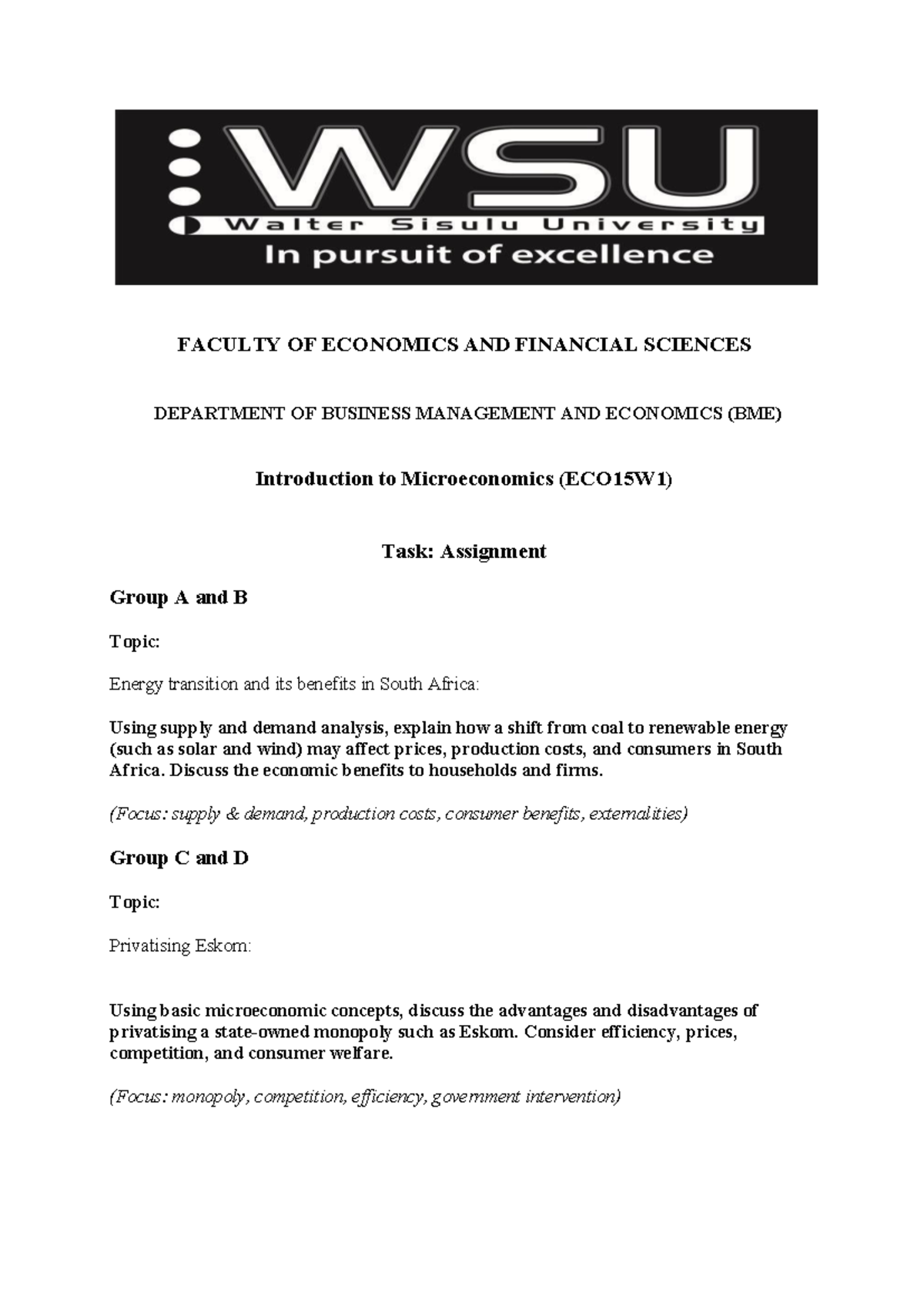 ECO15W1 Assignment: Microeconomics Topics - Studocu