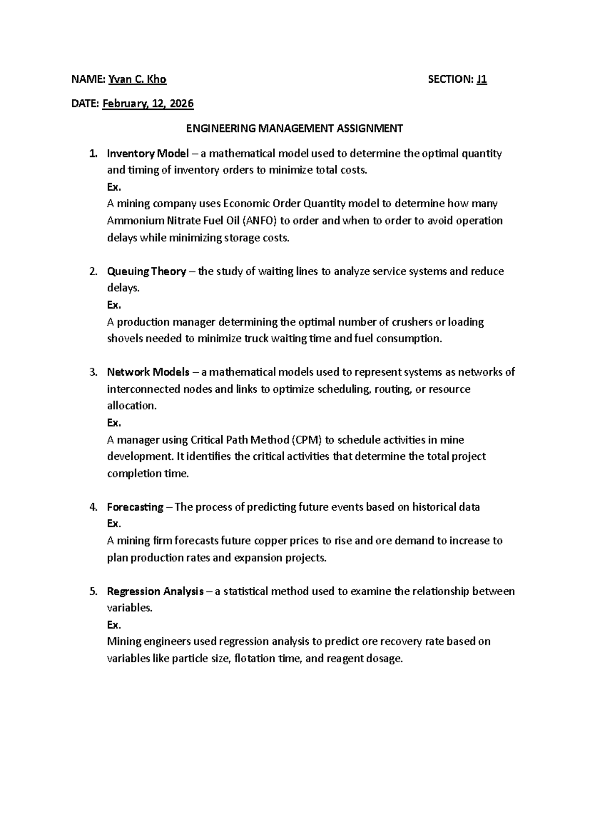 ES23 Engineering Management Assignment 1: Inventory & Queuing Models ...