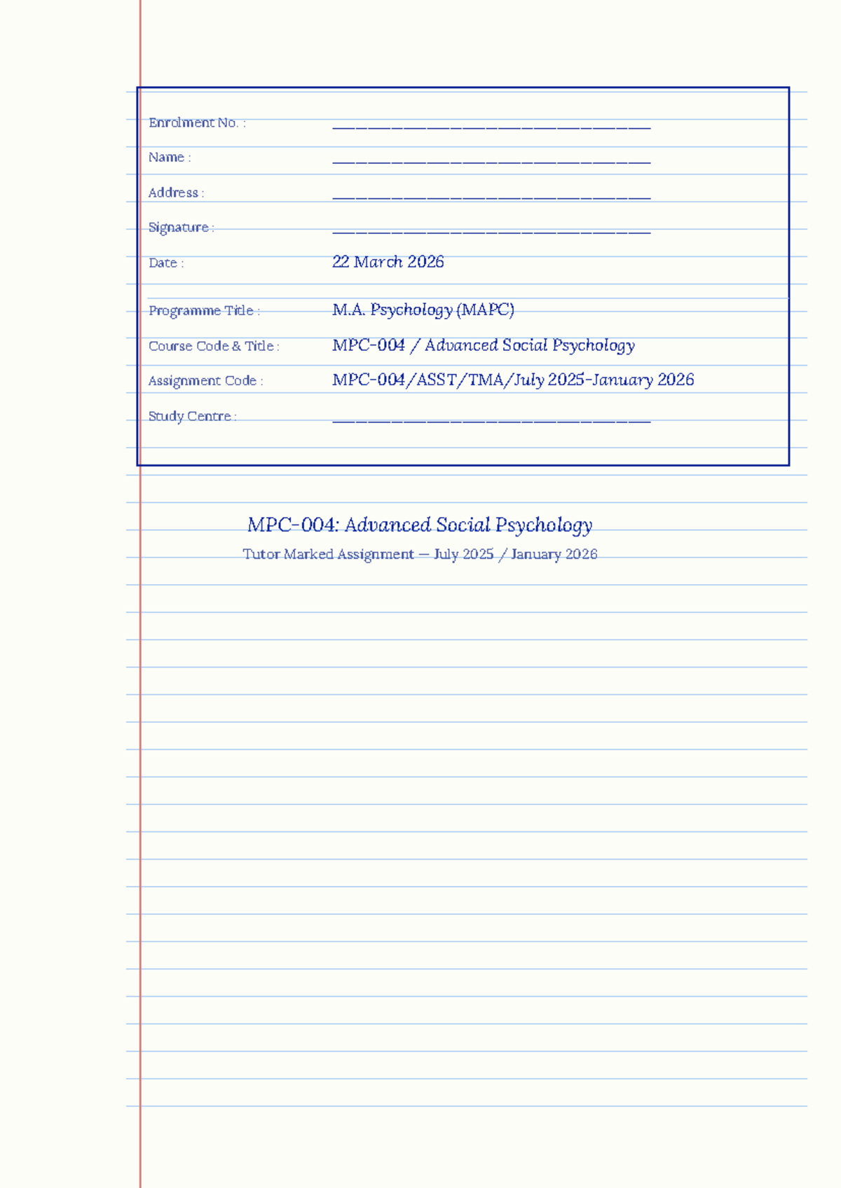 MPC004 Assignment: Advanced Social Psychology Insights - Studocu
