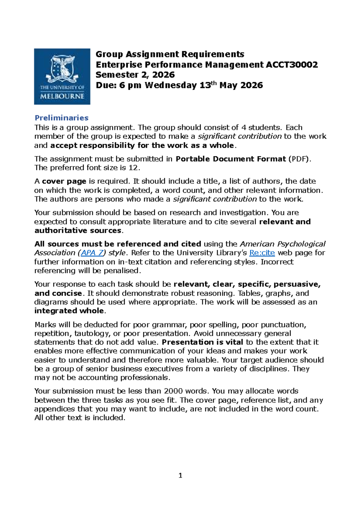 Group Assignment Brief: Enterprise Performance Management OPM 2026s1 ...