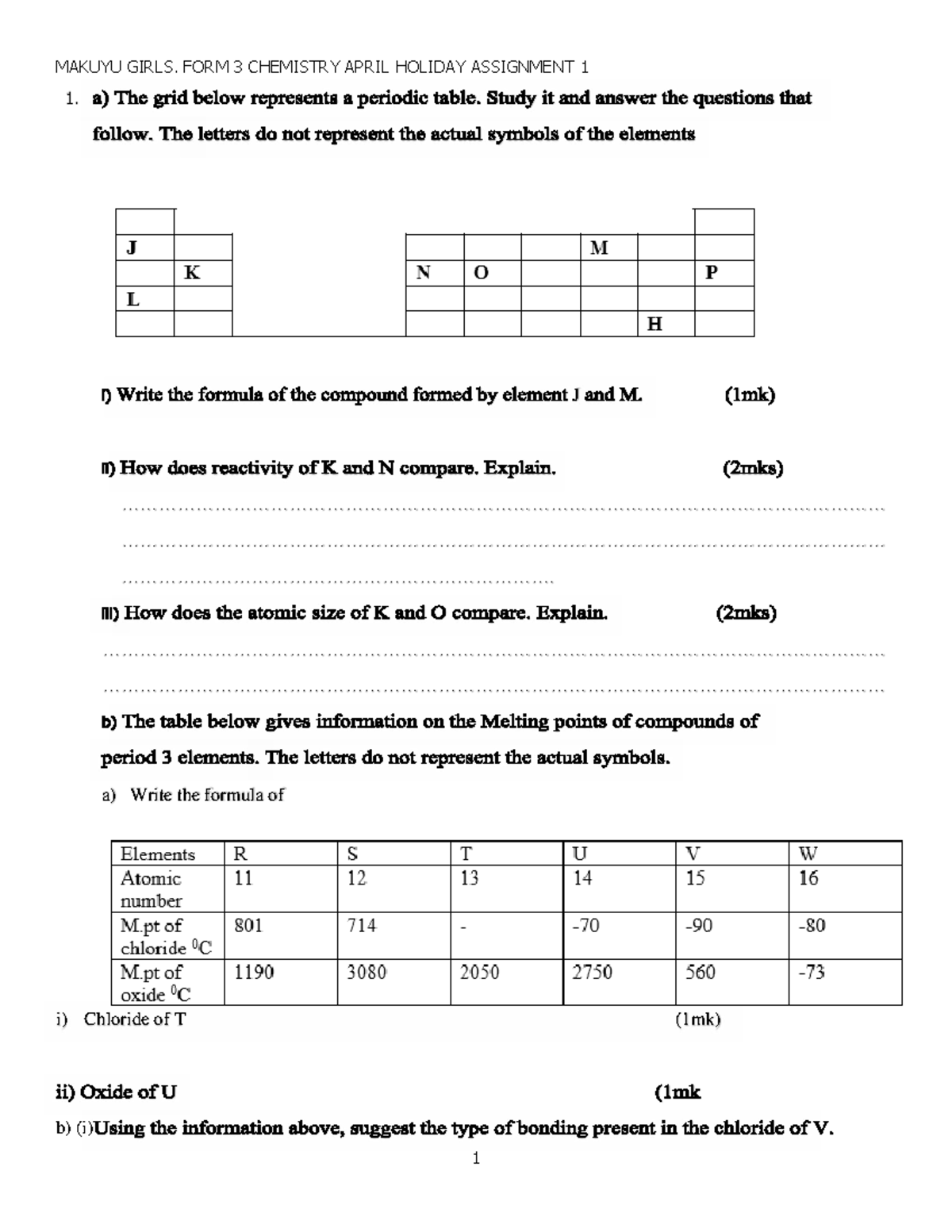 MAKUYU GIRLS. FORM 3 CHEMISTRY APRIL HOLIDAY ASSIGNMENT 1 - Studocu