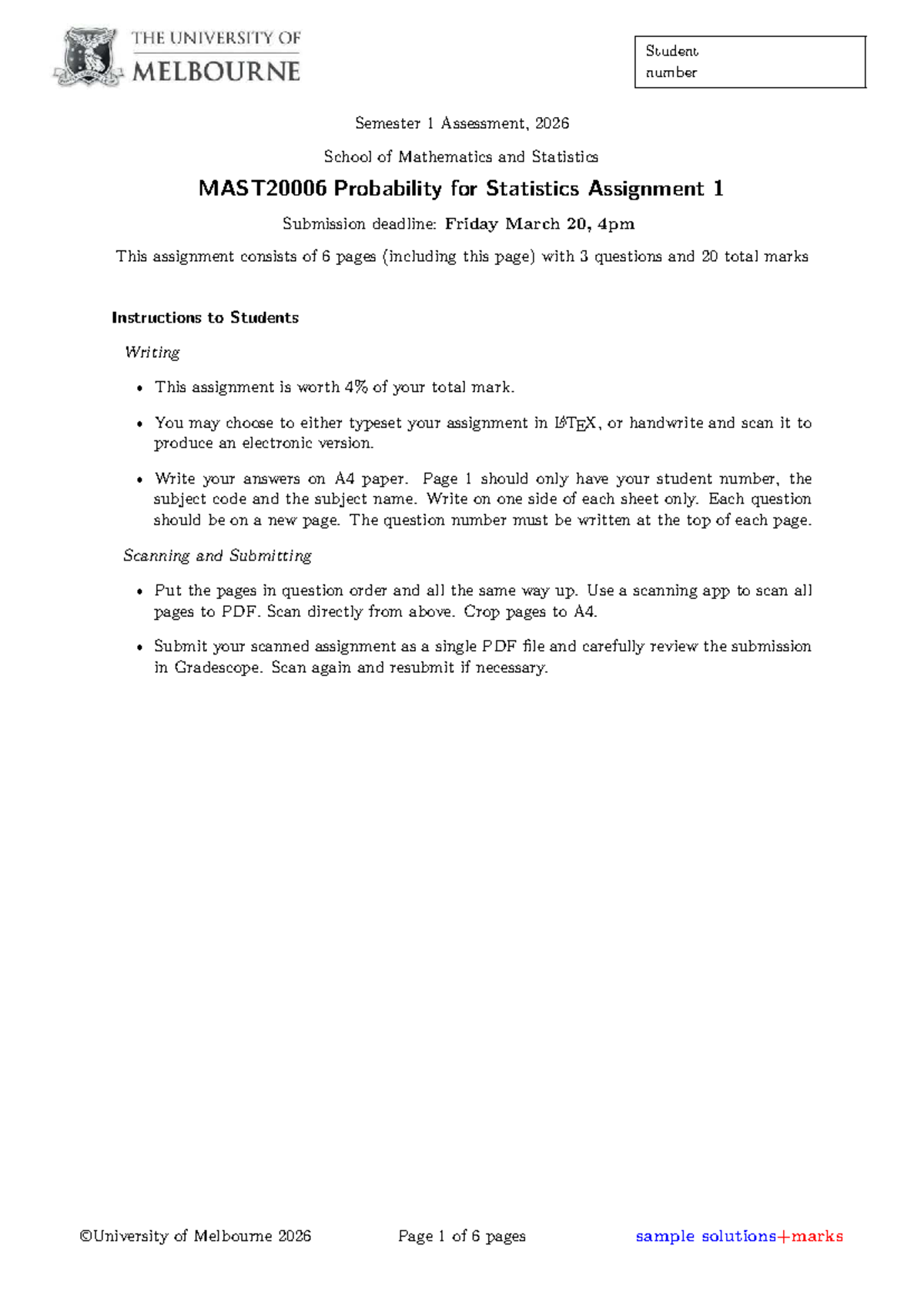 Probability for Statistics Assignment 1 (MATH101) - Semester 1, 2026 ...