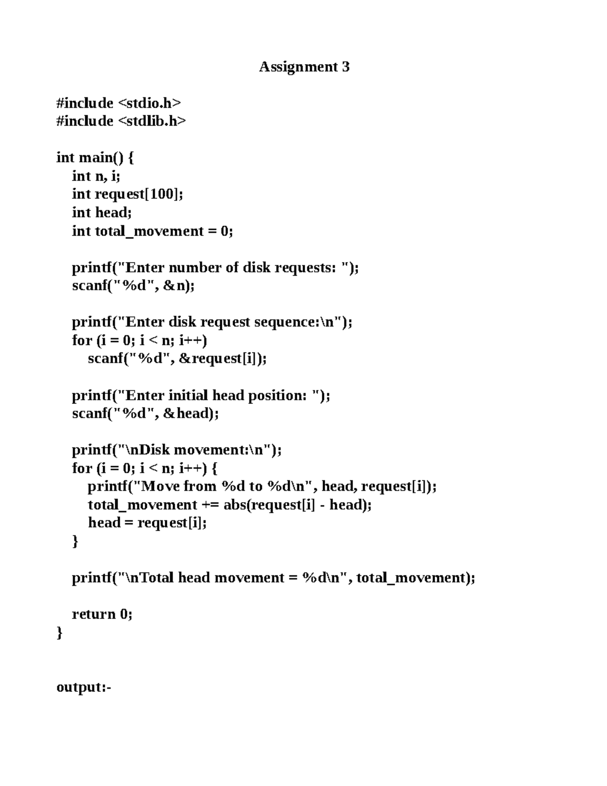 Assignment 3 - OS Disk Scheduling Algorithms Implementation - Studocu