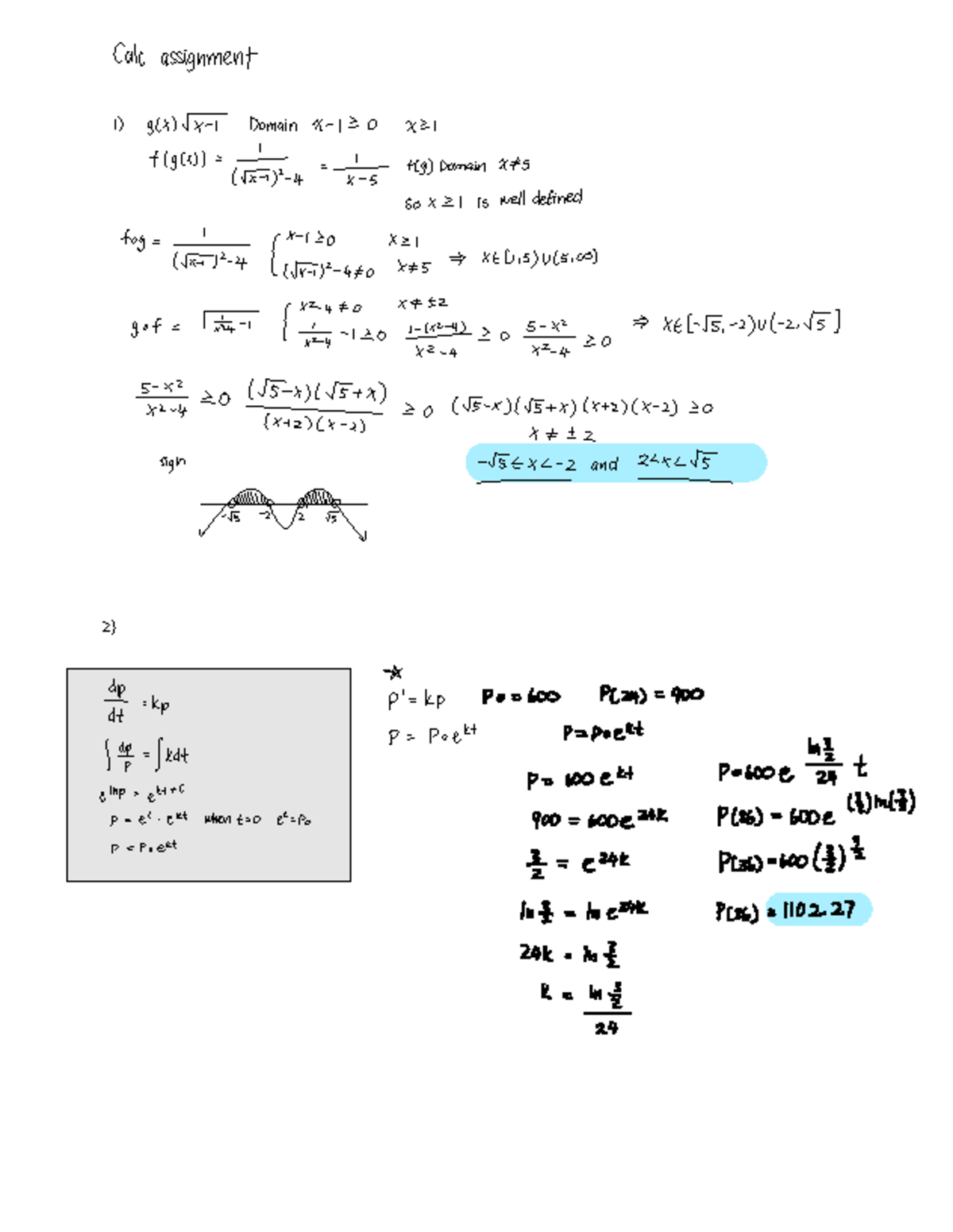 Calc Assignment 1: Domain Analysis and Function Transformations - Studocu