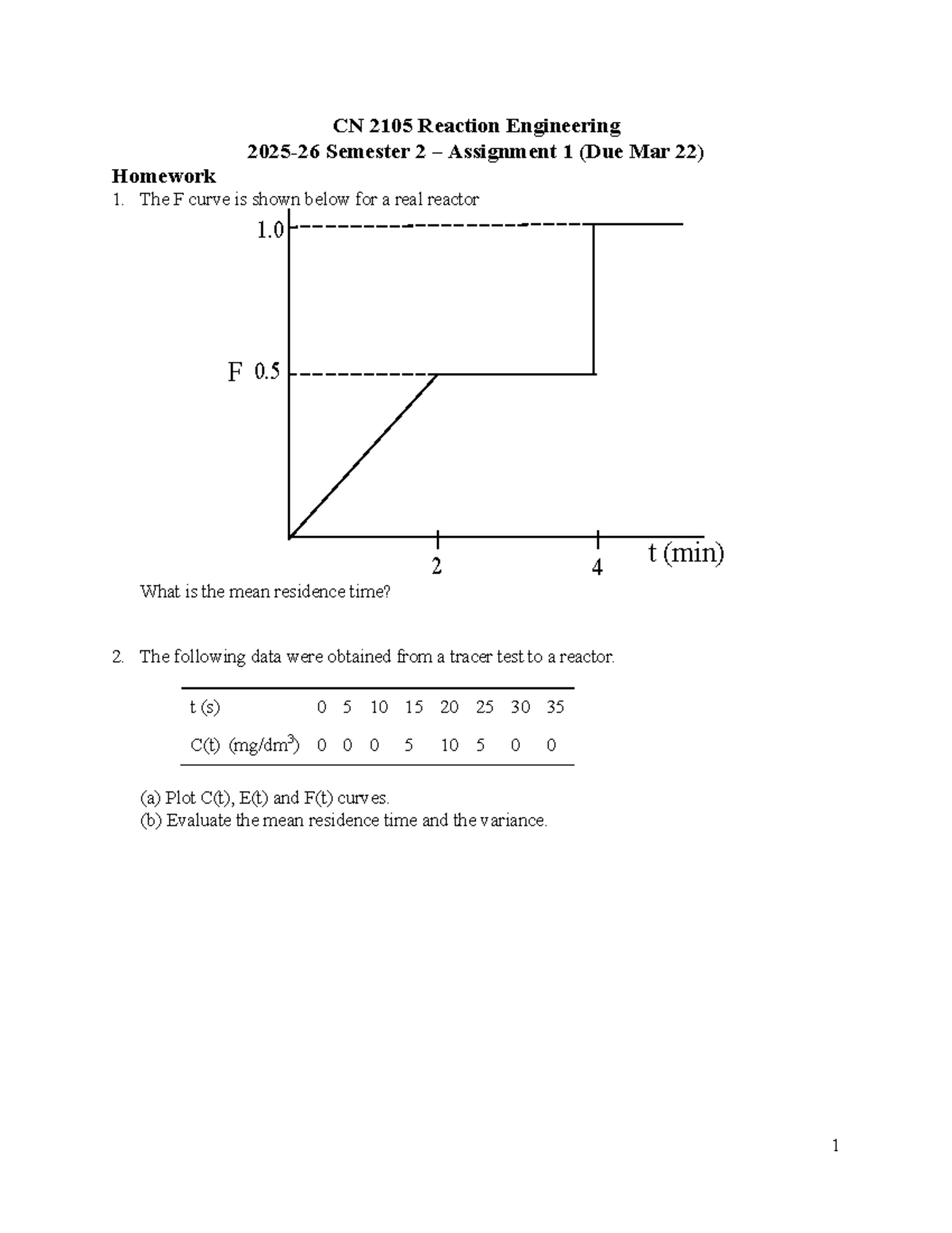 CN 2105 Reaction Engineering Sem 2 Assignment 1: Mean Residence Time ...