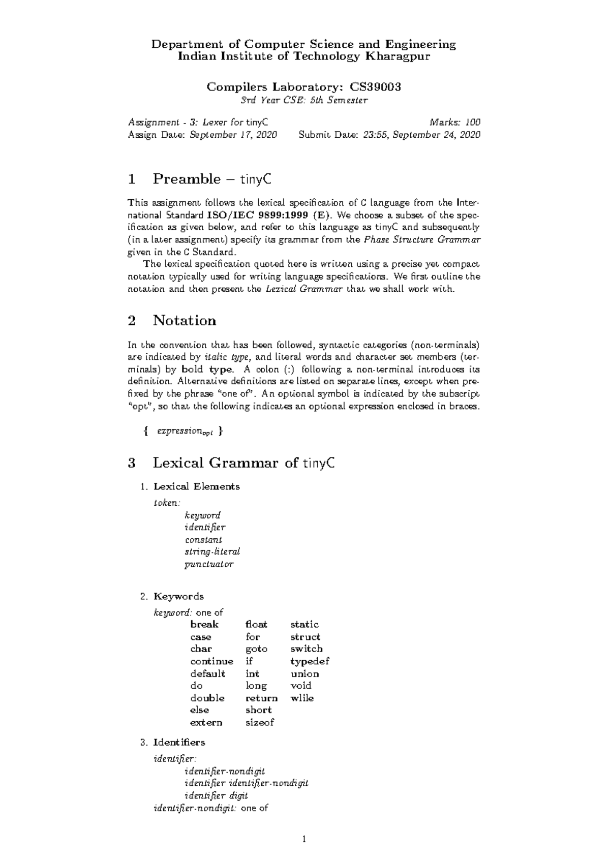 CS39003 3rd Year CSE: Assignment 3 - Lexer for tinyC - Studocu