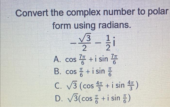 Solved Convert a complex number in polar form shown below to | Chegg.com