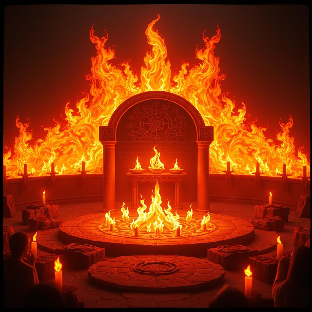 Prophet Elijah stands before a blazing altar, calling down fire, as a ...