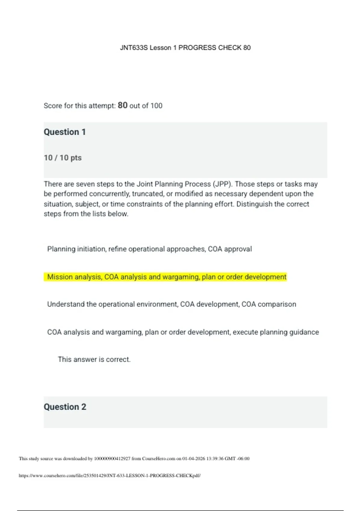 JNT 633 LESSON 1 PROGRESS CHECK | Questions and answers | updated 2026 ...