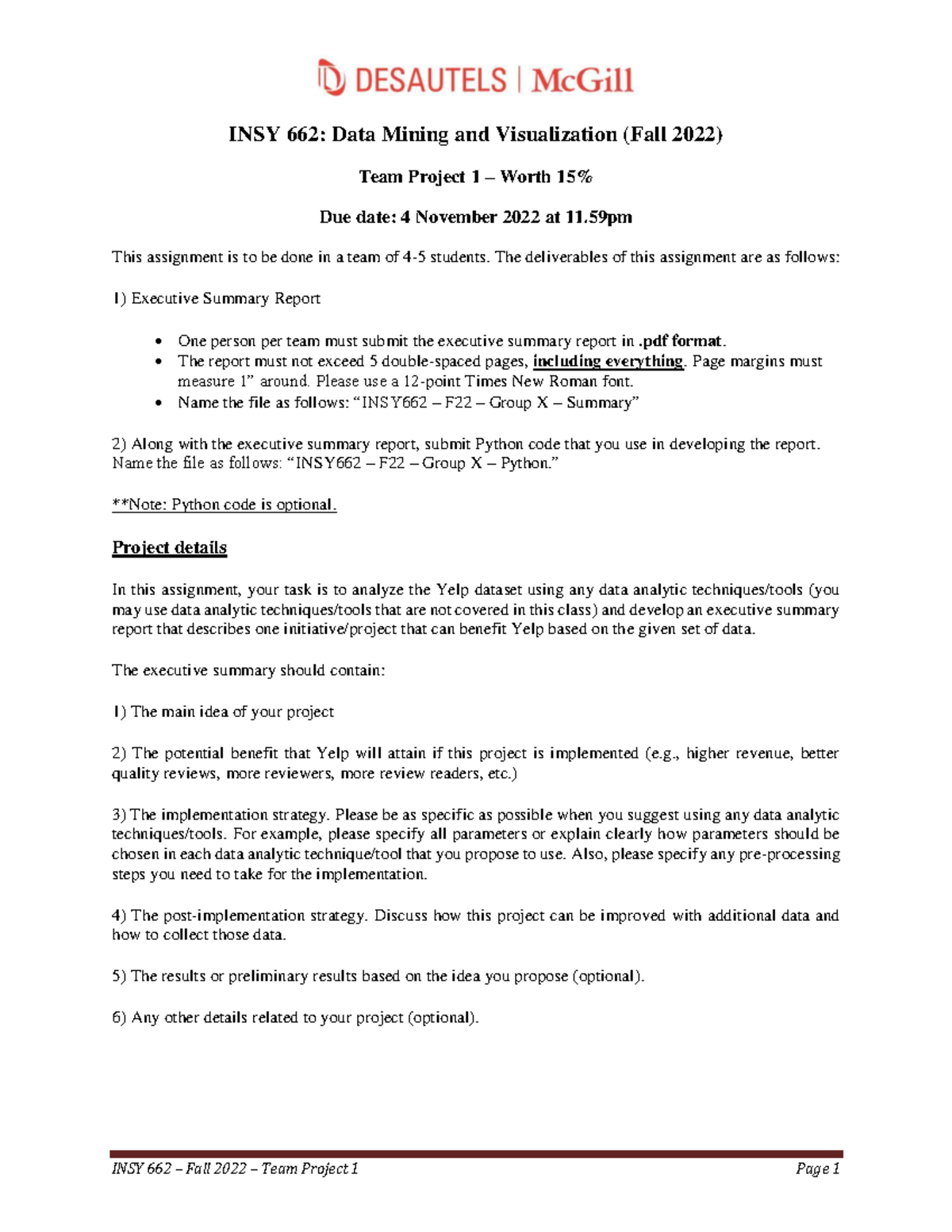 INSY662 - F22 - Team Project 1 - INSY 662 – Fall 2022 – Team Project 1 ...