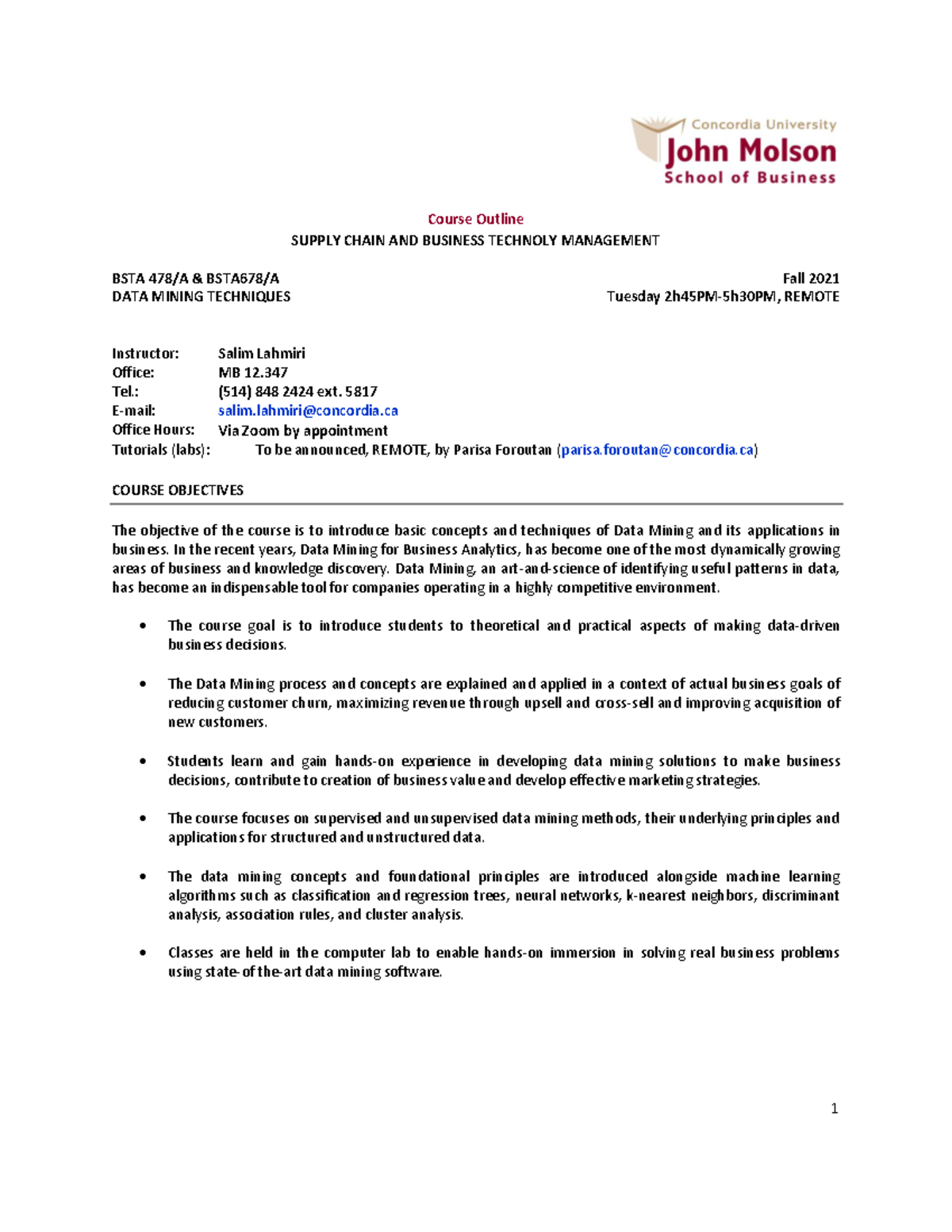BSTA 478 course Outline Salim Lahmiri - Course Outline SUPPLY CHAIN AND ...