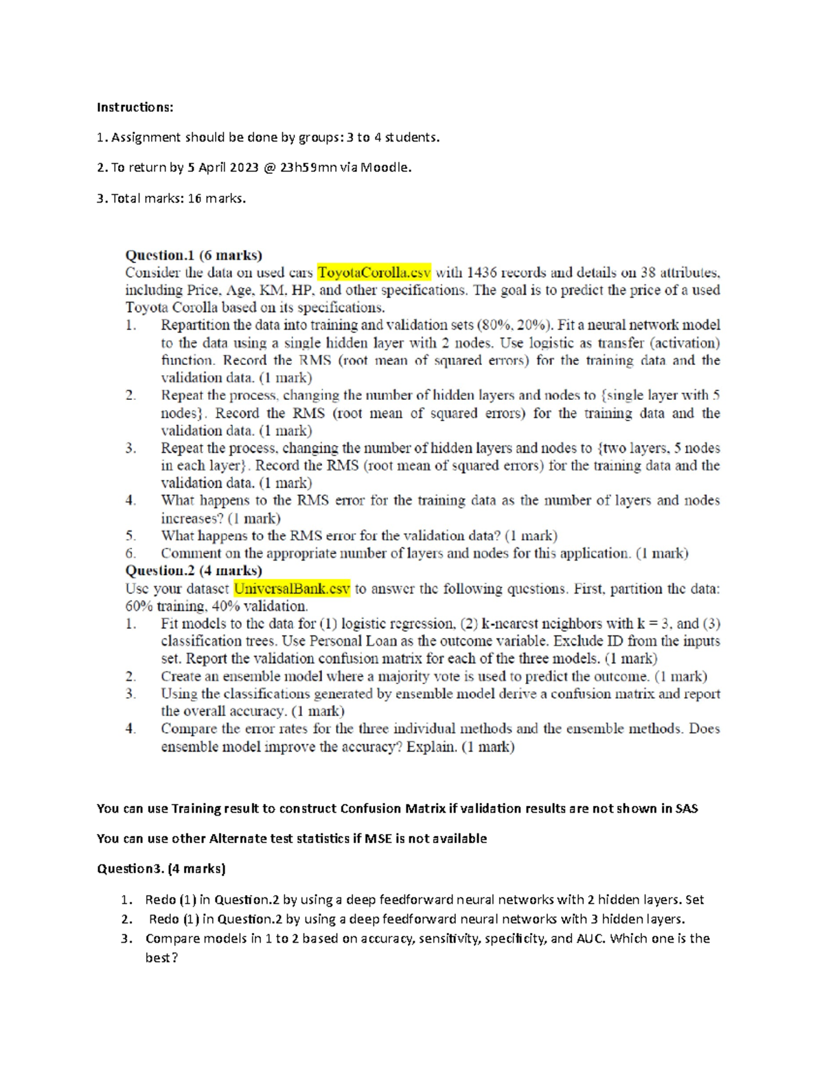 Questions (1) - ASSIGNMENT 2 - and notes for ensemble model for A2 ...