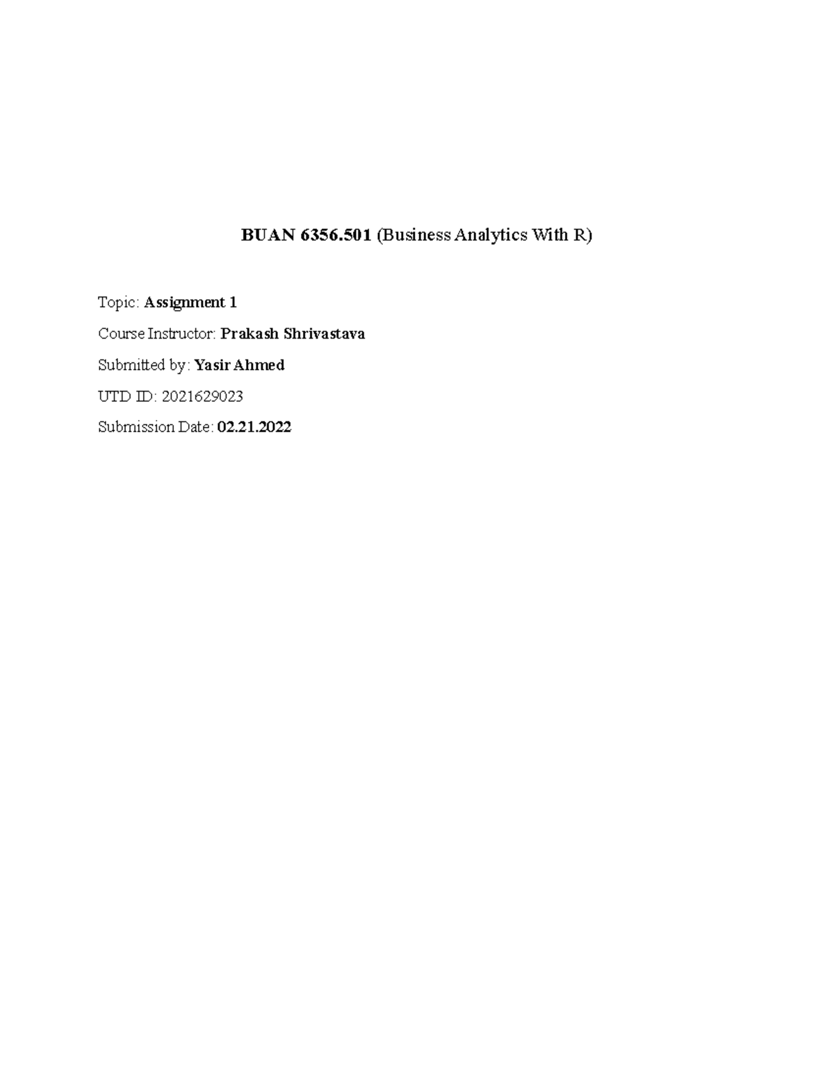Assign 1 - BSTA 478.pdf - BSTA 478 Due Oct 10 2018 Assignment 1 Solve ...
