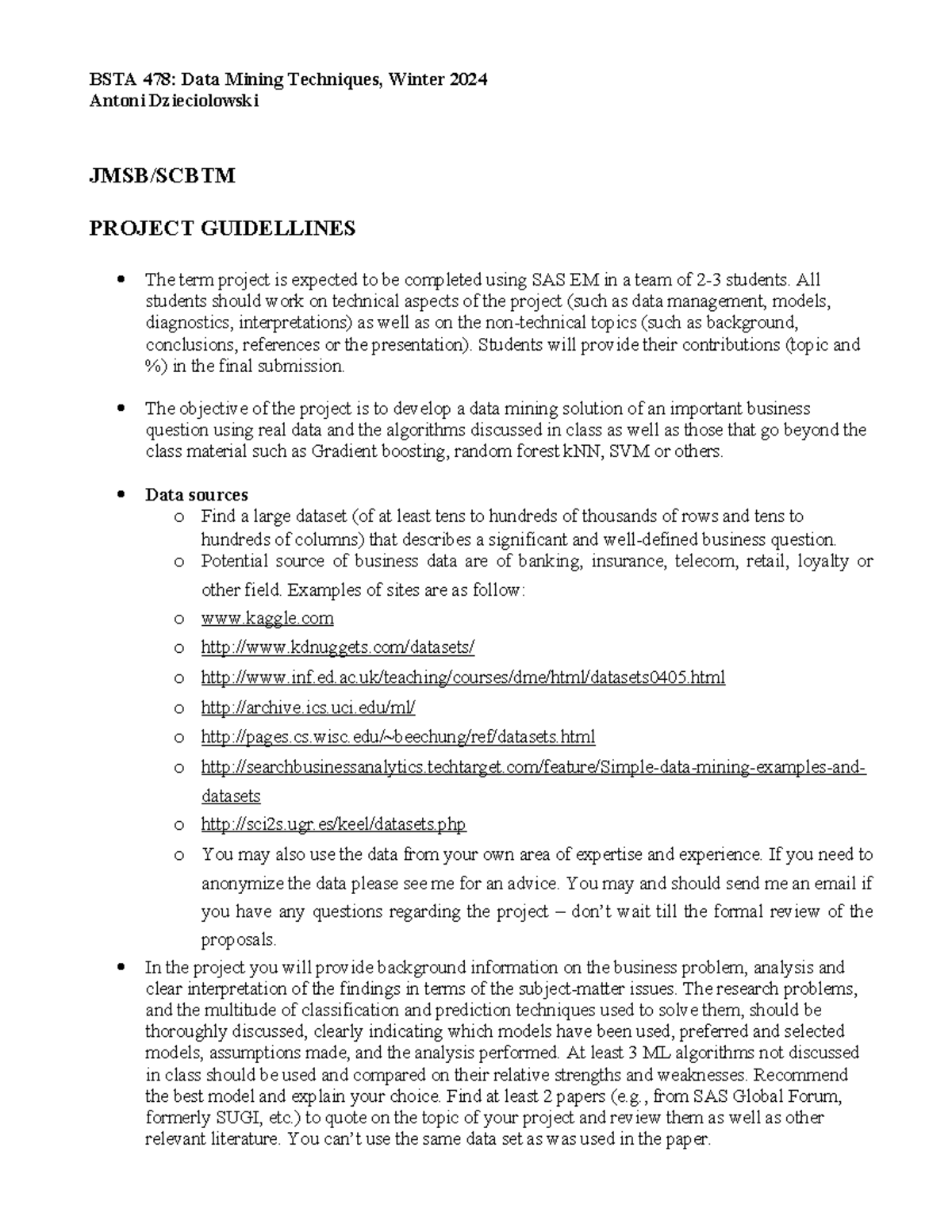 BSTA 478 Project Guidelines 2024 Winter - BSTA 478: Data Mining ...