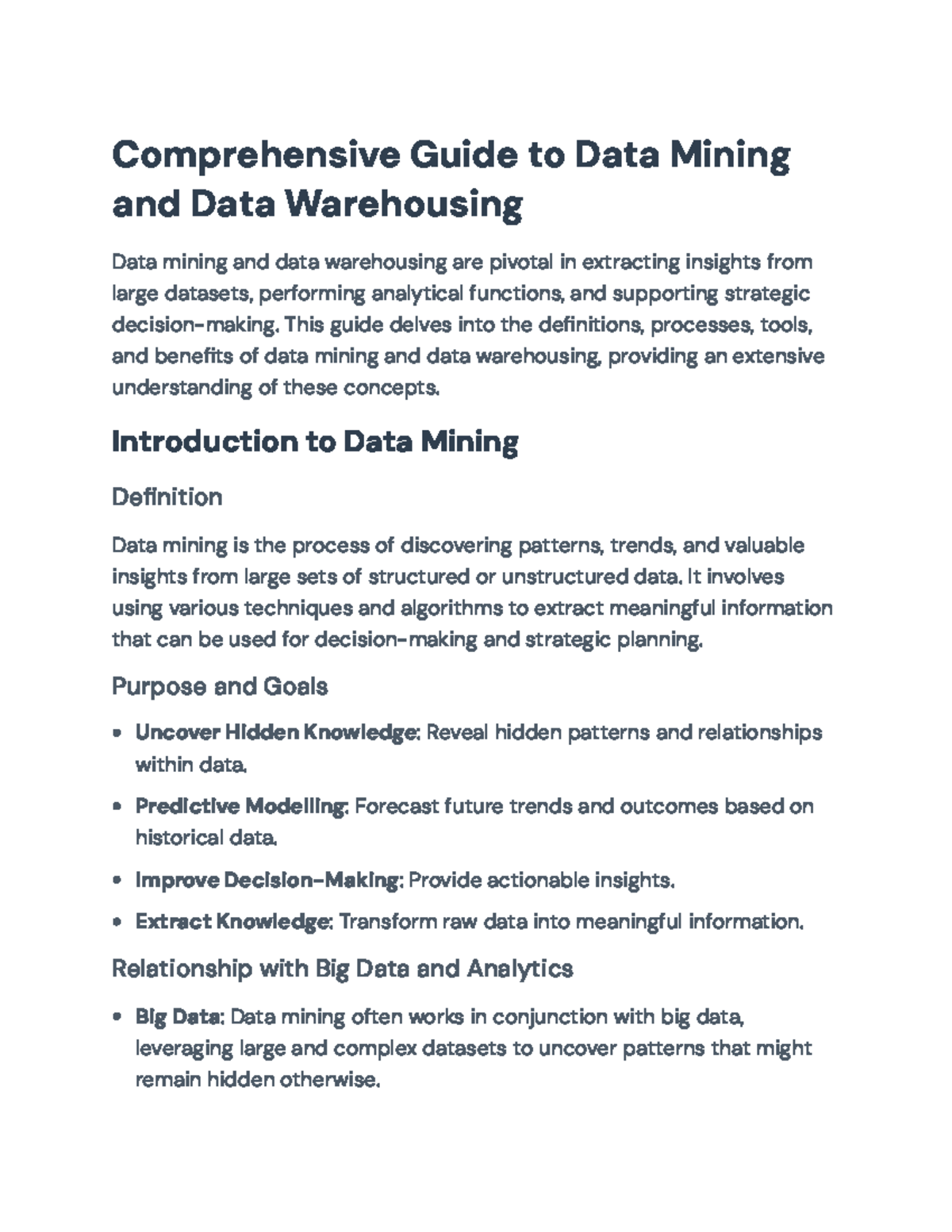 Data Mining & Warehousing: Comprehensive Study Guide for ADMN 301 - Studocu