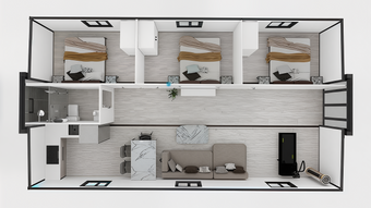 40FT Expandable Container Home with Three Bedrooms and Bathroom for ...