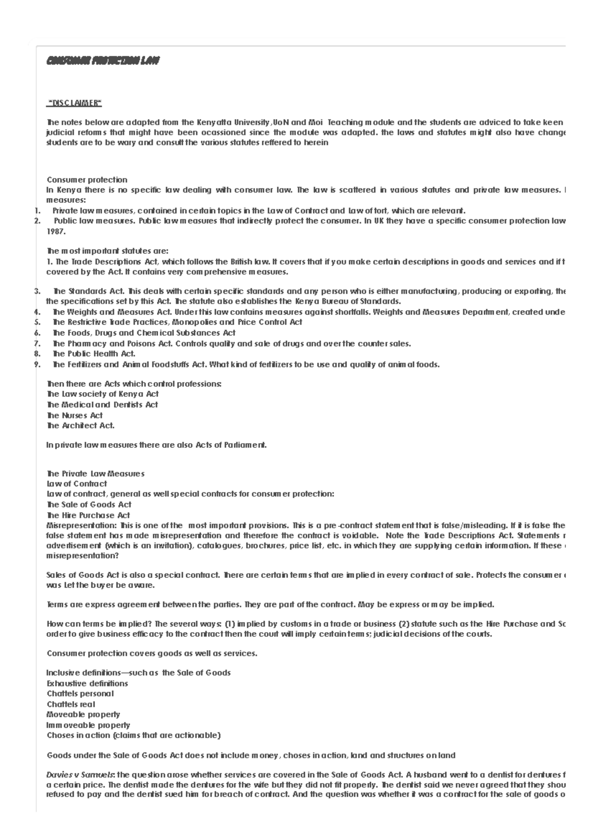 Consumer Protection Law Overview: Key Statutes and Measures - Studocu