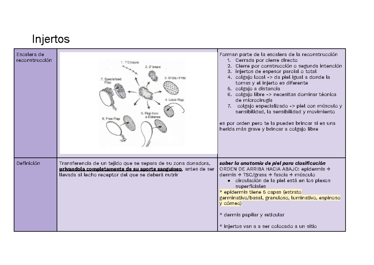 Notas sobre Injertos en Cirugía Plástica (CPL 101) - Studocu