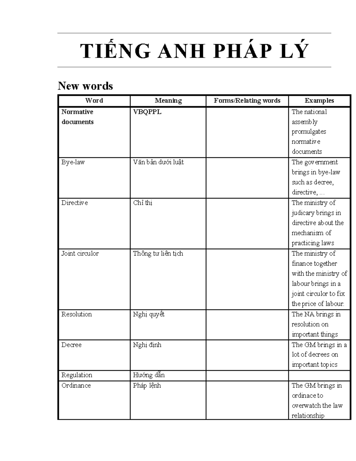 Tiếng Anh Pháp Lý - Từ Vựng và Bài Tập (CPL 101) - Studocu