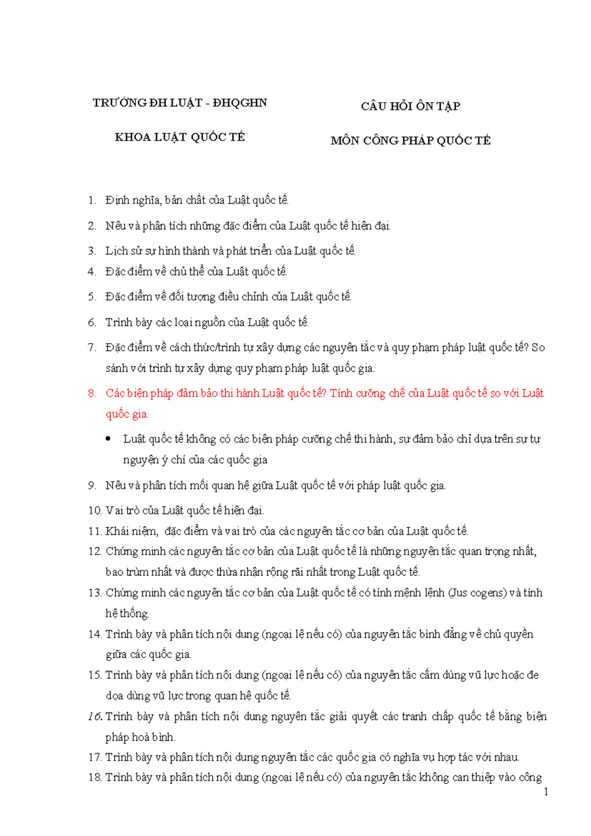 Đề cương ôn tập môn Công pháp quốc tế (CPL 101) - Studocu