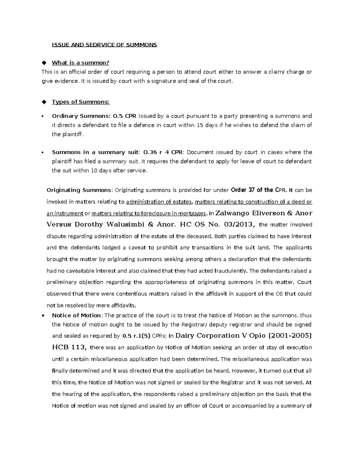 Issue and Service of Summons in Civil Procedure Law (CPL 101) - Studocu