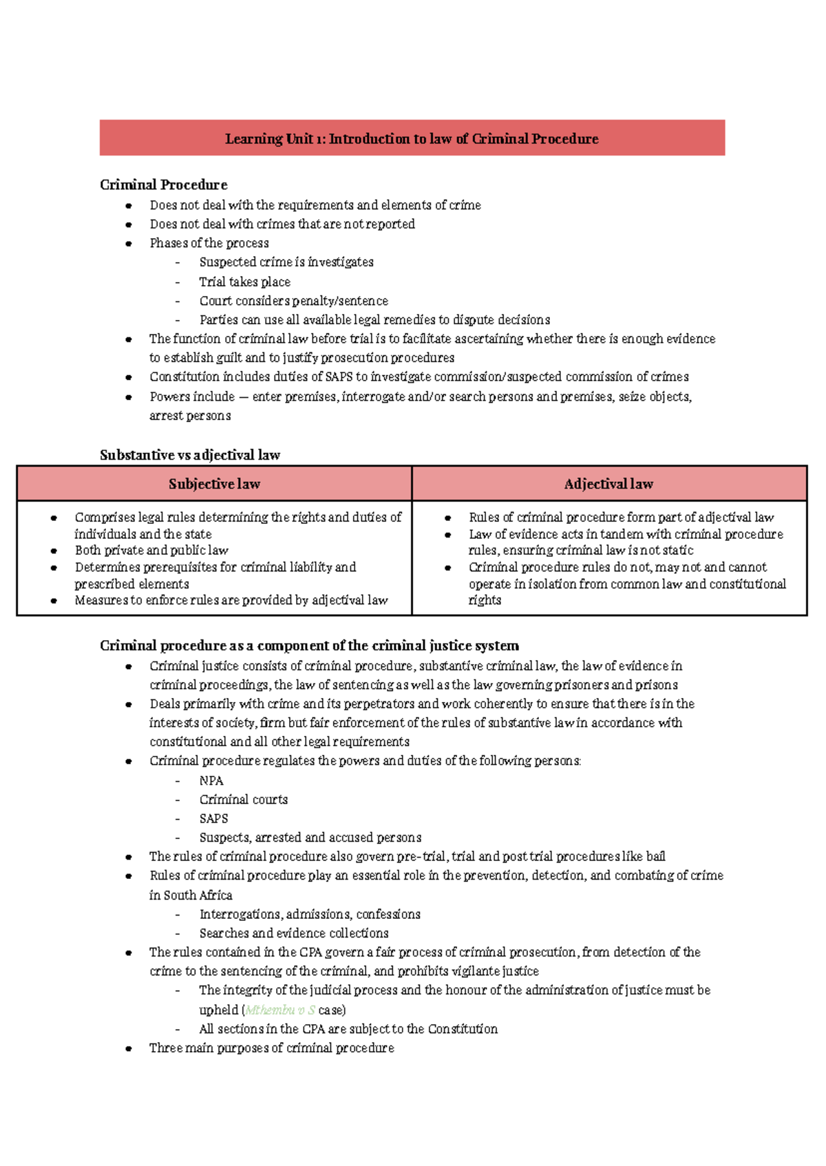 Criminal Procedure (CPL 101): Learning Unit 1 - Intro to Criminal Law ...