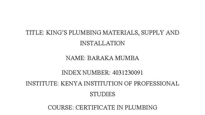 Title: Business Plan for Plumbing Materials Supply & Installation (CPL ...