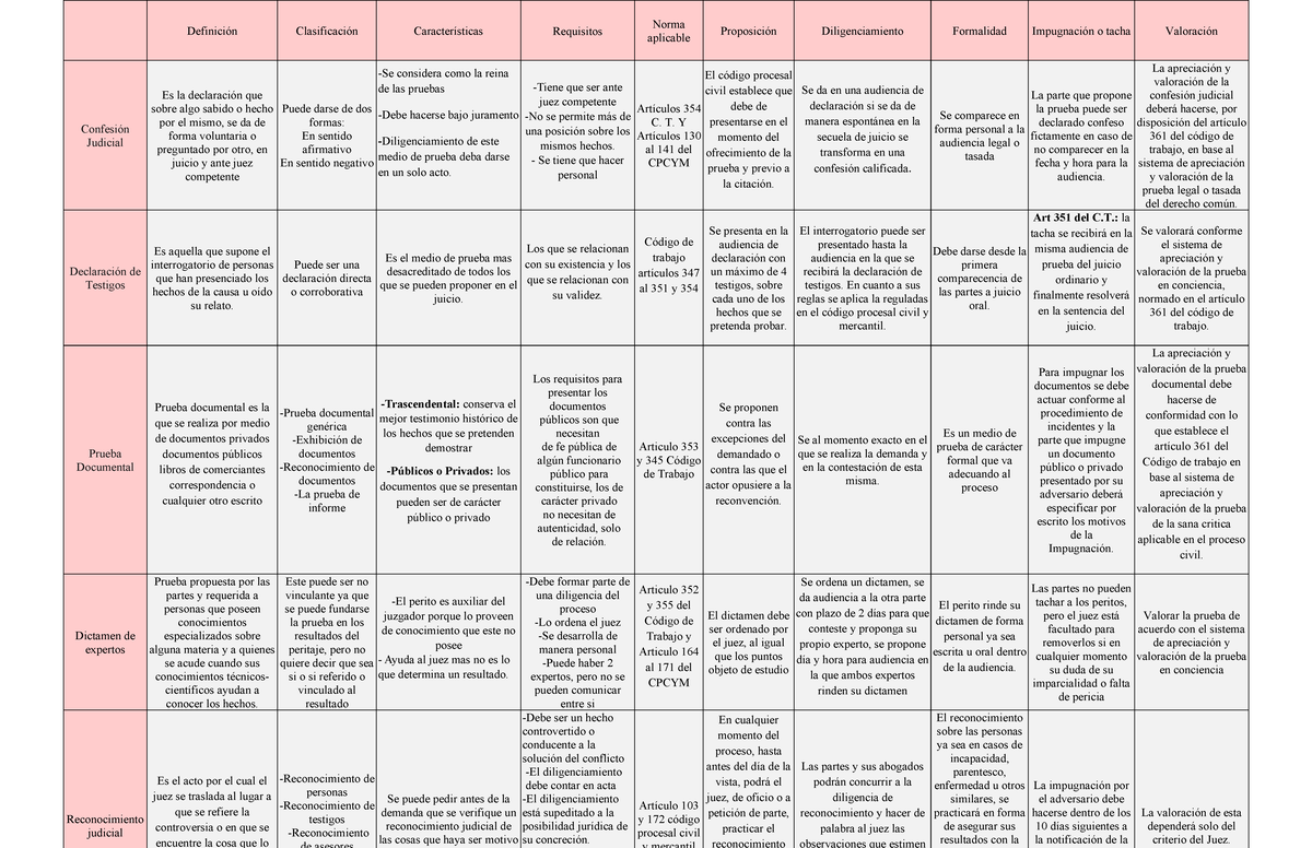 Cuadro Comparativo sobre Pruebas en Procesal Laboral (CPL 101) - Studocu