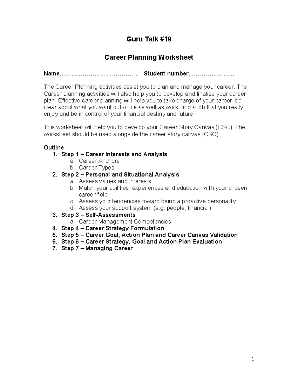Career Planning Worksheet: A Guide to Your Future (CPL 101) - Studocu