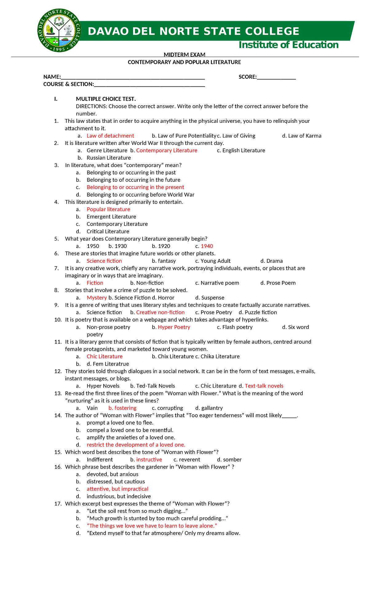 Midterm EXAM: Contemporary & Popular Literature (CPL 101) - Studocu