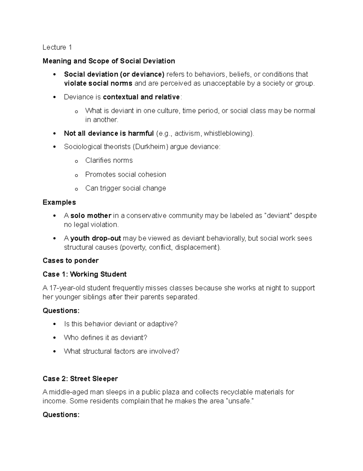 Lecture 1: Understanding Social Deviation and Its Implications - Studocu