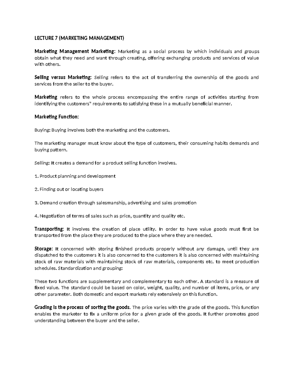 LECTURE 7 (MKTG MGT) Marketing Functions and Mix Explained - Studocu