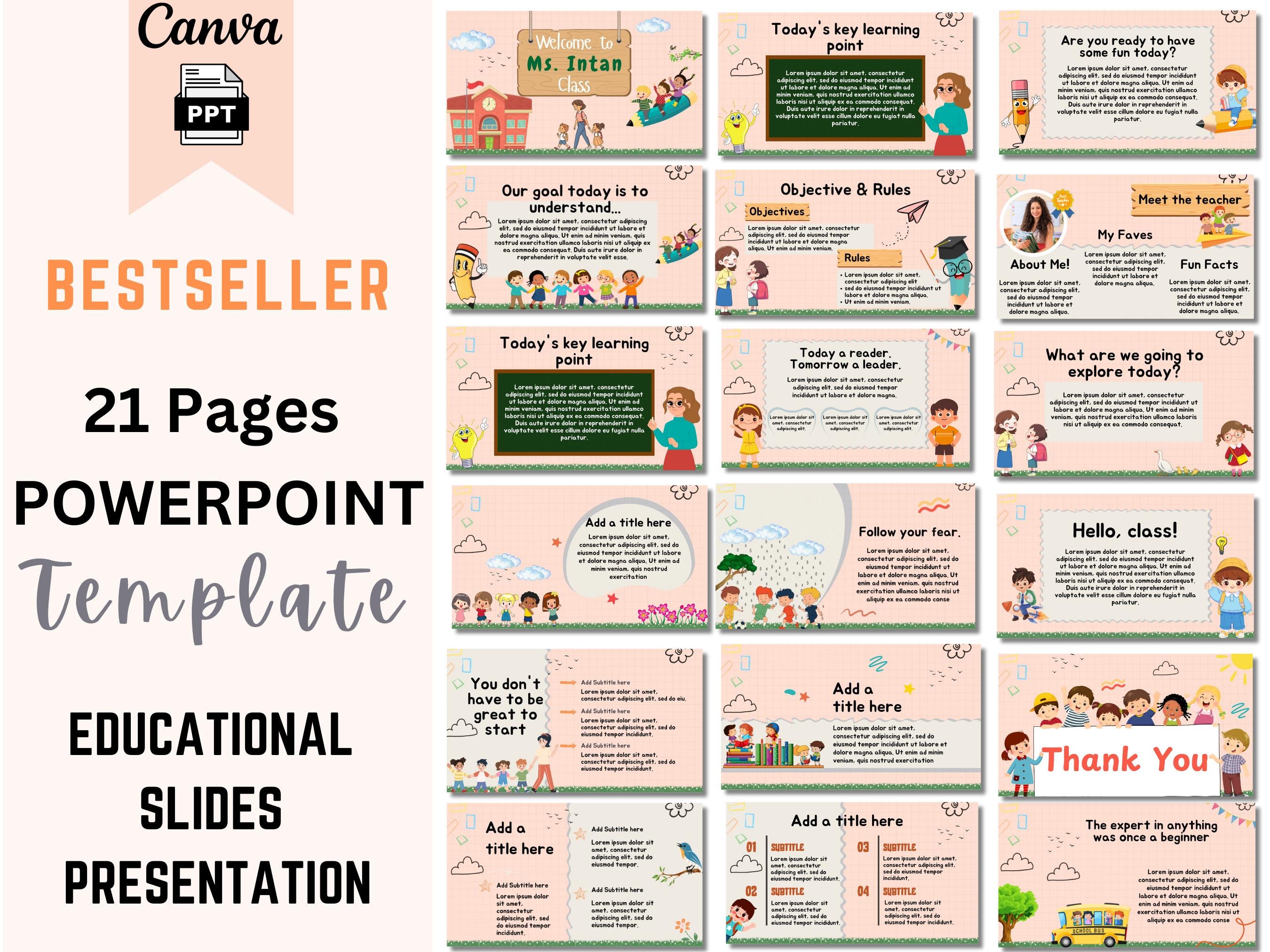 Interactive Kids Classroom PPT Template: 21 Editable Slides (digital ...