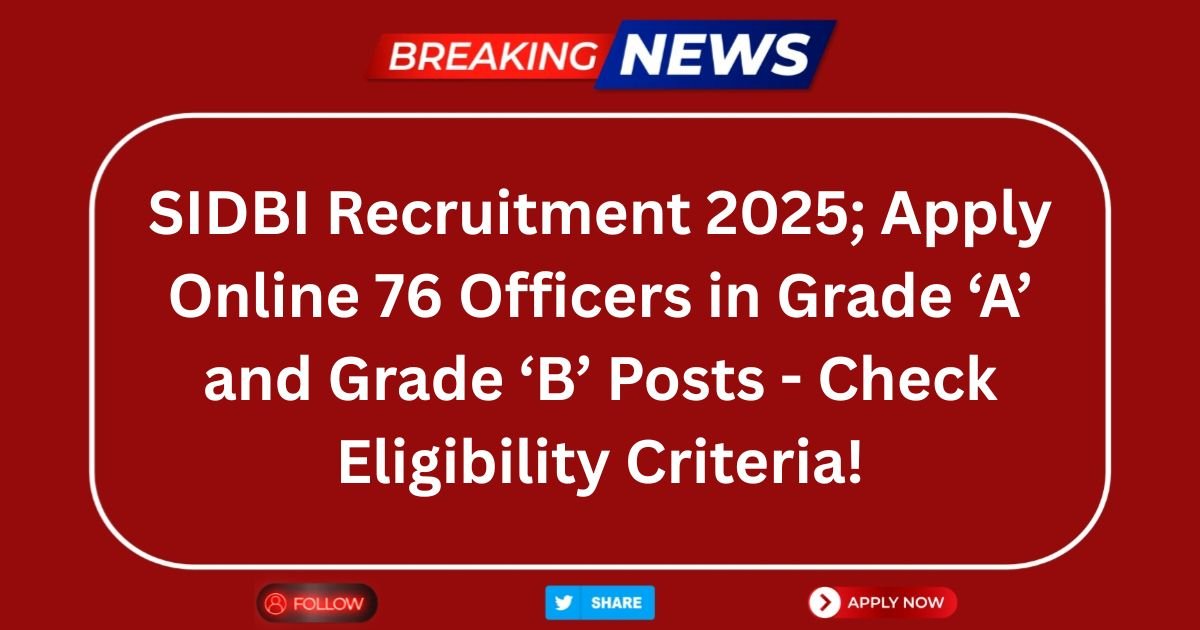 SIDBI Recruitment 2025 - Apply Online for Grade A & B Posts for 76 ...