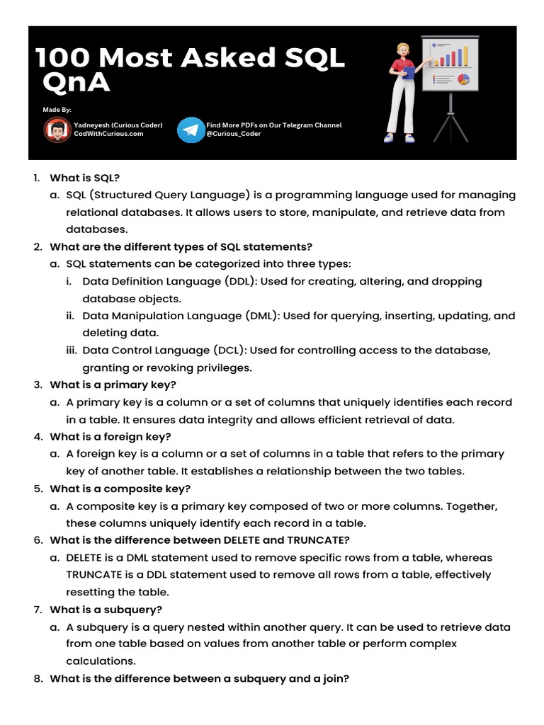 100 Most Asked SQL QnA | PDF | Database Index | Relational Database