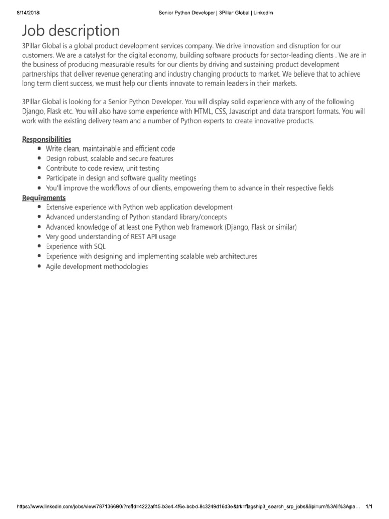 Job Description_Senior Python Developer | PDF | Automation | Selenium ...