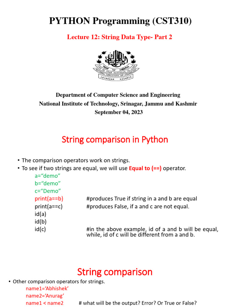 Based on this image's title: “12 Lecture Python Strings - Part 2 | PDF | String (Computer Science ...