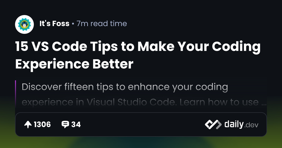 15 VS Code Tips to Make Your Coding Experience Better | daily.dev