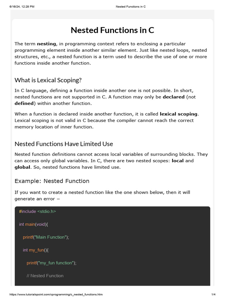 Nested Functions in C | PDF | Scope (Computer Science) | Computer Science